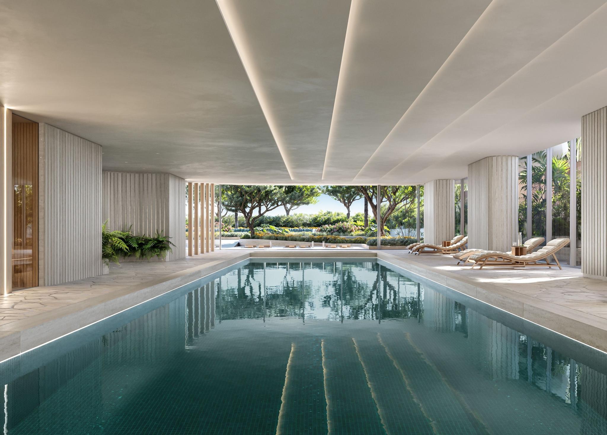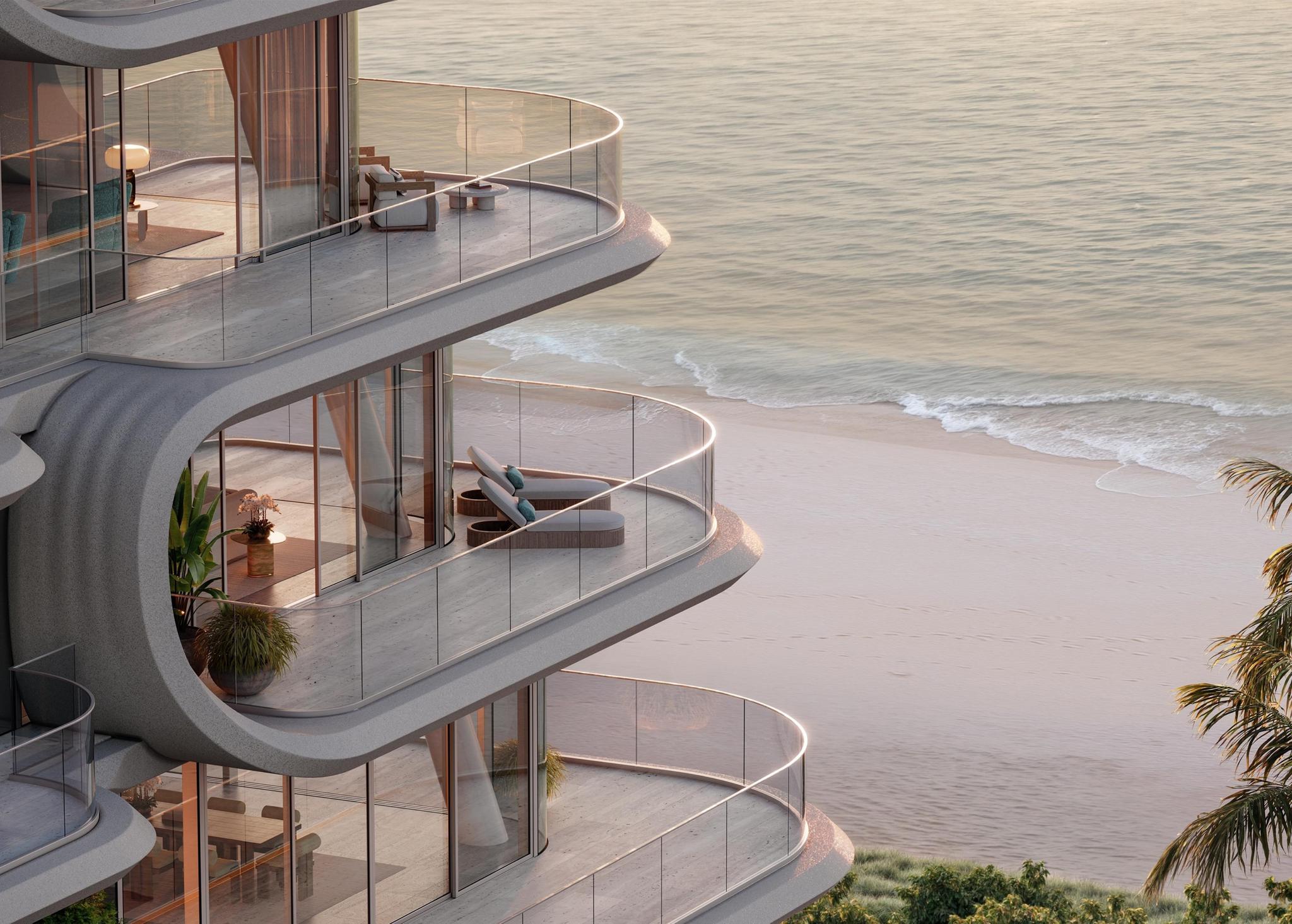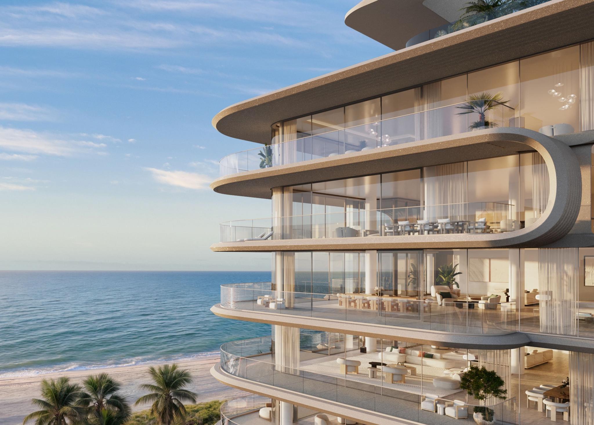 Each fully furnished residence is meticulously designed to offer expansive, light-filled interiors, with four to five bedrooms, two kitchens (a chef’s and an entertaining kitchen), and breathtaking oceanfront terraces. Offering a collection of 4 and 5 bedroom units with 5,000 - 12,000 interior sqft, these residences create a sense of effortless grandeur, elevate luxury living to new heights. Every detail is carefully curated, from the finest materials to bespoke finishes that enhance both function and beauty. With its glass fiber reinforced concrete façade, the building seamlessly blends into the coastal landscape, providing an ambiance of modern elegance.
