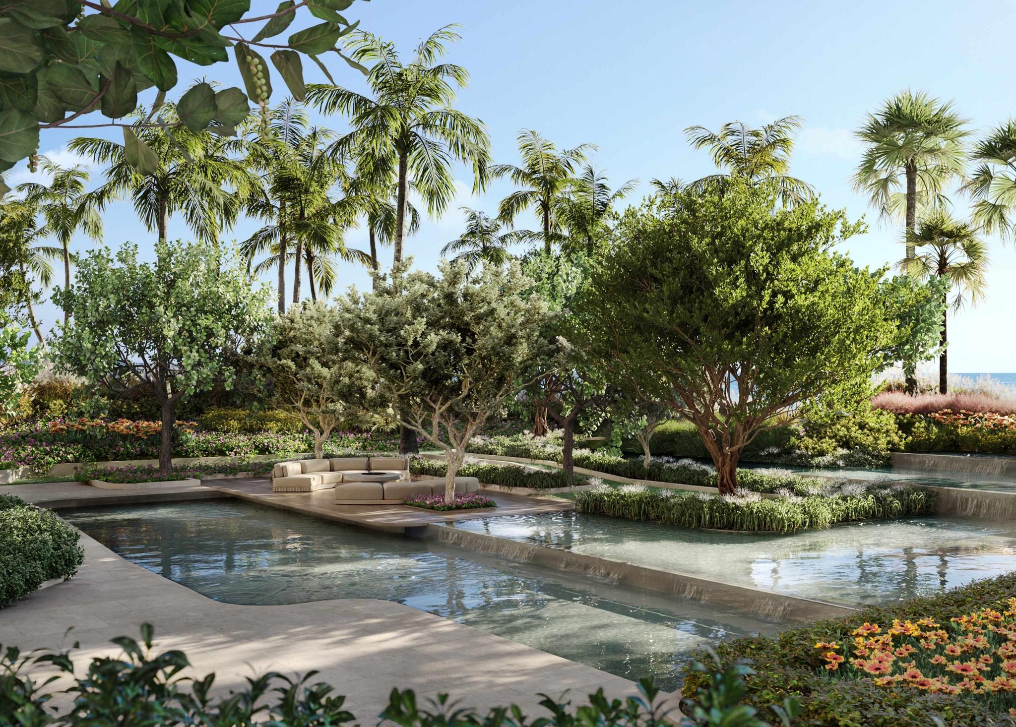 The Delmore’s 55,000 square feet of resort-style amenities have been thoughtfully designed to create a sanctuary of relaxation and well-being. Residents will discover a world of serenity, with a 75-foot-long suspended acrylic pool, a 20,000-square-foot meditation garden, a rooftop pool deck, and a spa featuring steam rooms, saunas, and hot and cold plunge pools. A private restaurant, curated by a Michelin-rated chef, offers an exclusive dining experience, while cascading reflective pools, open-air spaces for yoga and healing, and a fire pit create an atmosphere of tranquility. Every space is designed to foster connection, rejuvenation, and an elevated way of living.