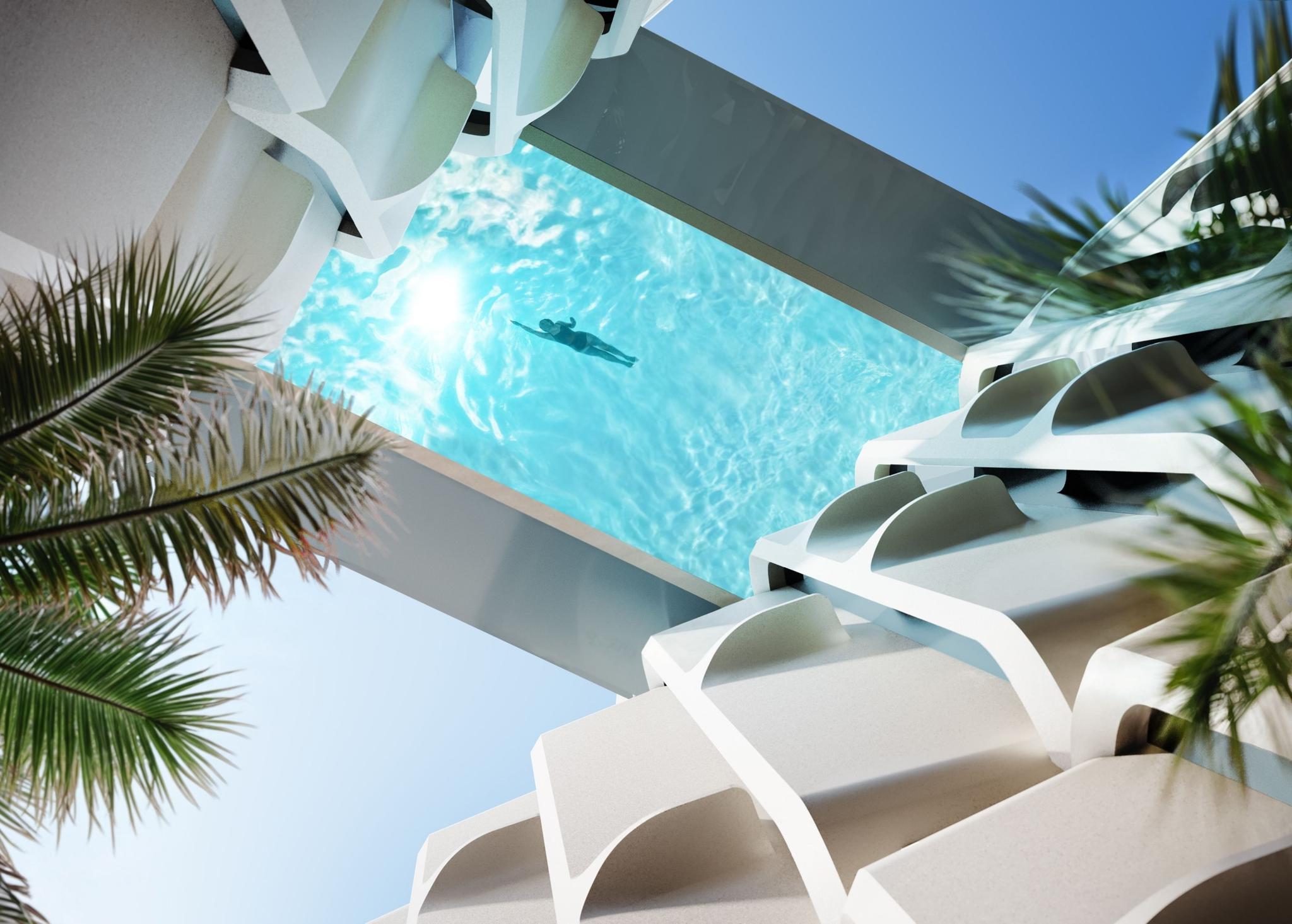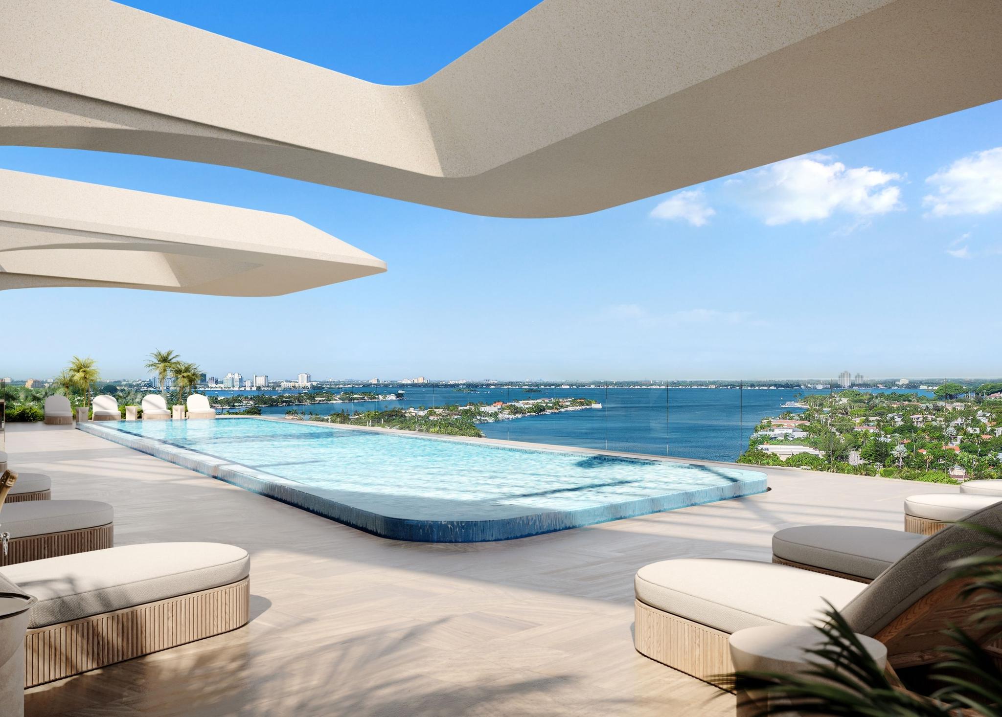 - Canyon-Spanning Pool: 75-foot, glass bottom sky pool suspended at 125 feet, overlooking the Miami skyline